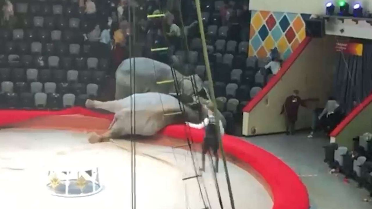 Rusya'ya bağlı Tataristan Cumhuriyeti'nin başkenti Kazan'daki bir sirk gösterisinde birbirine giren 2 fil, gösteriyi izleyenlere korku dolu anlar yaşattı.
