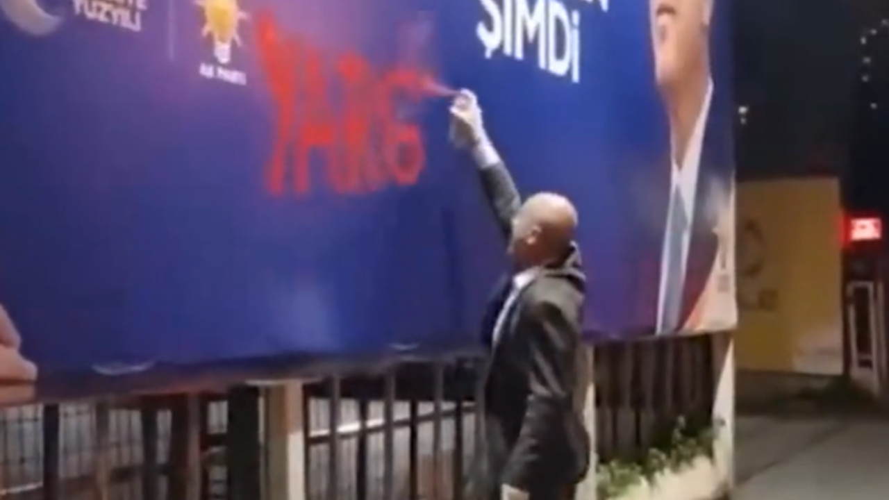 Emek ve Özgürlük İttifakı'nda yer alan TİP'in Milletvekili adayı Ahmet Şık , AK Parti’ye ait billboara "Yargılanacaksınız" yazarak provokasyona daha imza attı.