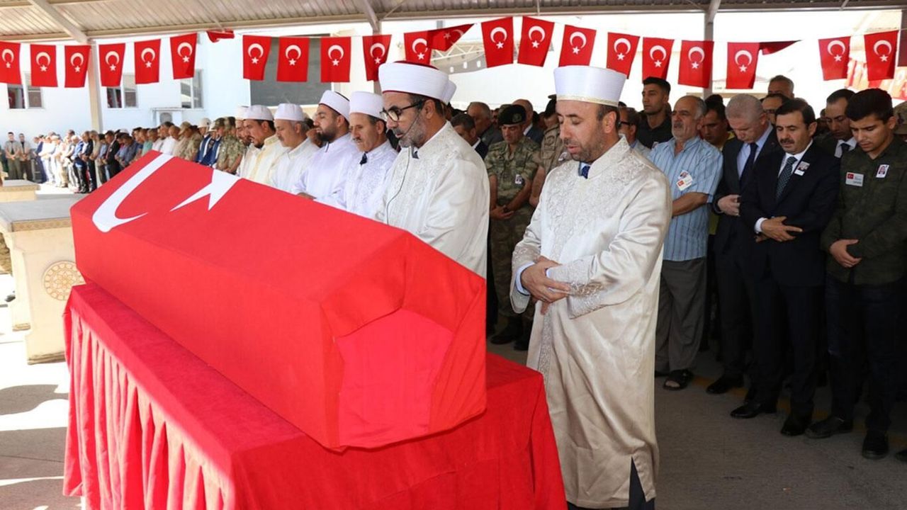 Hatay'ın Belen ilçesinde askeri aracın devrilmesi sonucu hayatını kaybeden Jandarma Uzman Çavuş Bünyamin Dinç'in cenazesi, memleketi Gaziantep'te toprağa verildi.