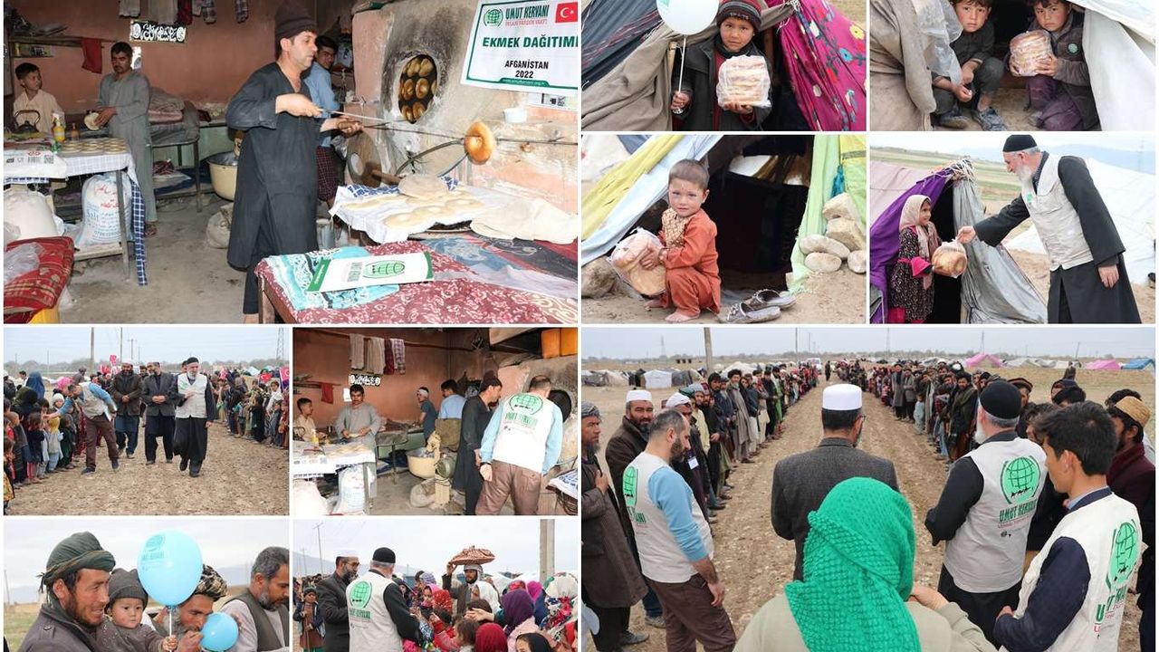 Bir dizi yardım çalışmaları için Afganistan'da bulunan Umut Kervanı İnsani Yardım Vakfı yetkilileri, Mezar-ı Şerif şehrinde bulunan bir kamptaki binlerce aileye ekmek yardımında bulundu.