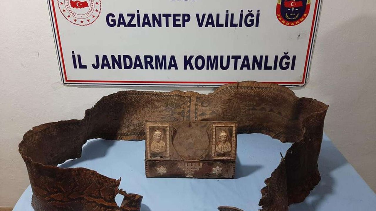 Gaziantep'te bir bağ evine düzenlenen operasyonda tarihi eser niteliğinde olduğu değerlendirilen üzerinde İbranice yazılar ve figürlerin yer aldığı piton yılanı derisi ele geçirilirken 2 şüpheli gözaltına alındı.