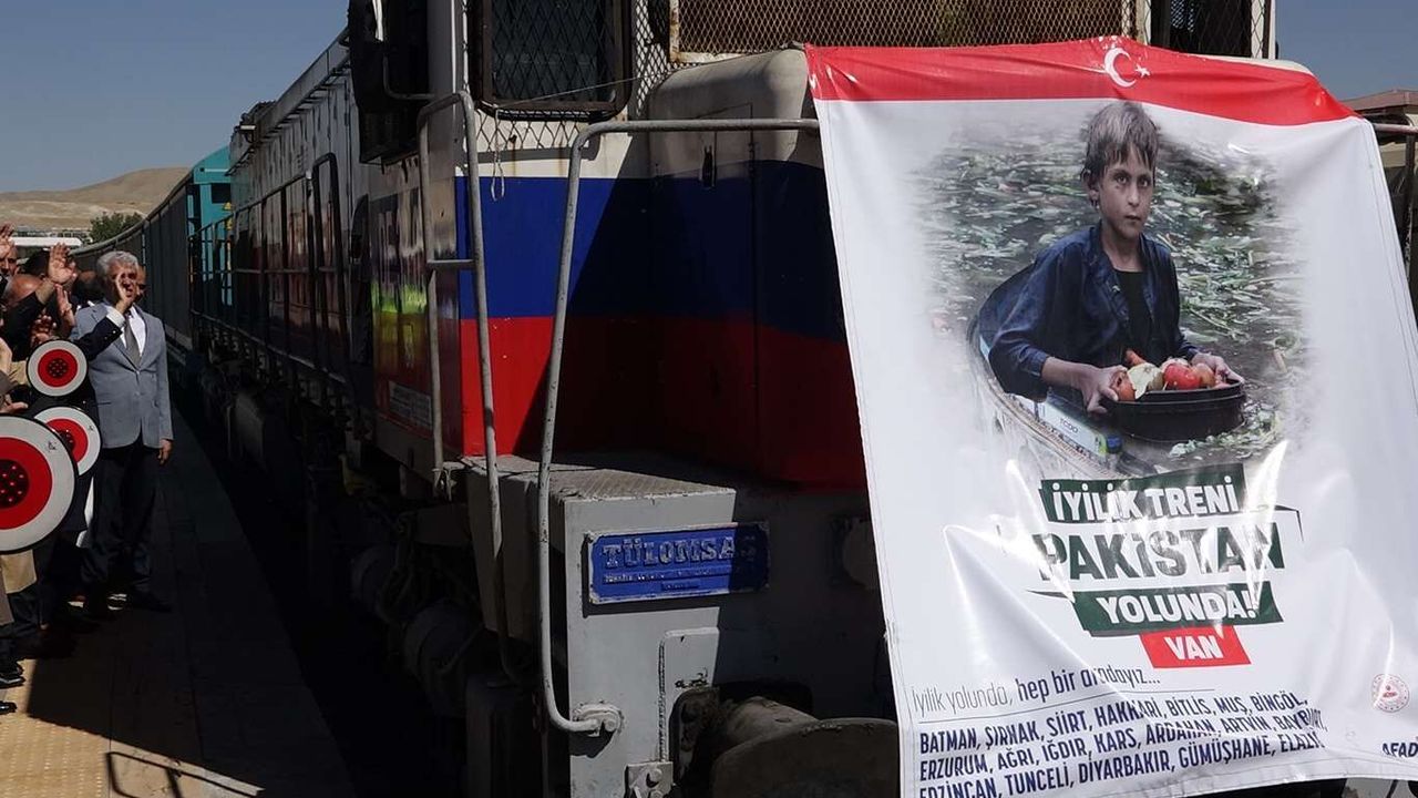 Pakistan'da yağan muson yağmurlarından dolayı meydana gelen sel felaketinden etkilenenlere Van'dan 39 vagondan oluşan temizlik ve gıda maddeleri dualarla gönderildi.