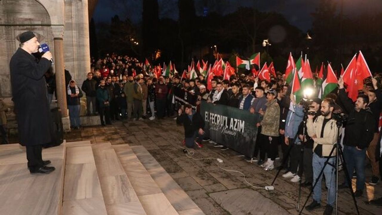 Beytülmakdis Öncüleri Derneği tarafından düzenlenen El Fecru'l Azim" sabah namazı buluşmasında konuşan Yazar Muhammed Emin Yıldırım, "Mekke aklımız, Medine kalbimiz, Kudüs gözümüz, İstanbul elimizdir. Gözümüzde hançer olduğu için görmüyor. O hançeri bu elle çıkaracağız. Kudüs özgür oluncaya kadar gayretimizden ödün vermeyeceğiz" dedi.