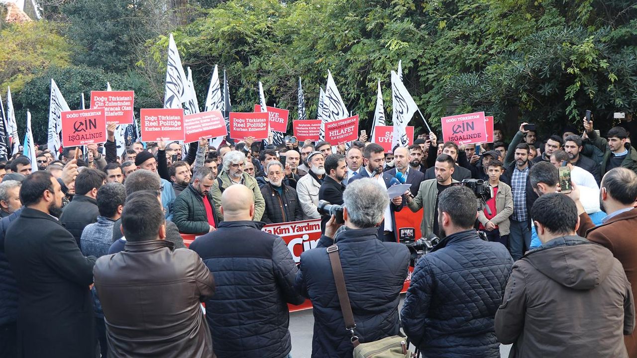 İstanbul Sarıye'deki Çin Konsolusluğu önünde bir araya gelen siyasi parti, STK temsilcileri ile çok sayıda vatandaş, zalim Çin'in, Doğu Türkistanlı Müslümanlara yaptığı zulmü protesto etti.