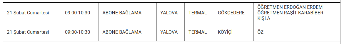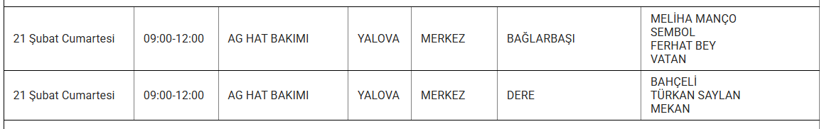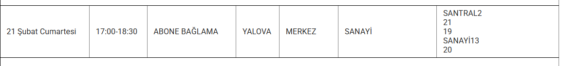 YALOVA YARIN 21 ŞUBAT ELEKTRİK KESİNTİSİ YAŞANACAK İLÇE VE MAHALLELER
