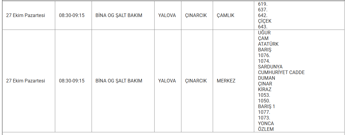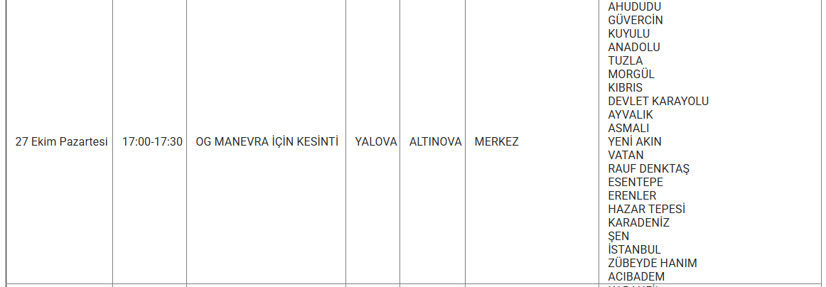Yetkililer, vatandaşların kesintiden olumsuz etkilenmemesi için gerekli tedbirleri almaları konusunda uyarıda bulundu.