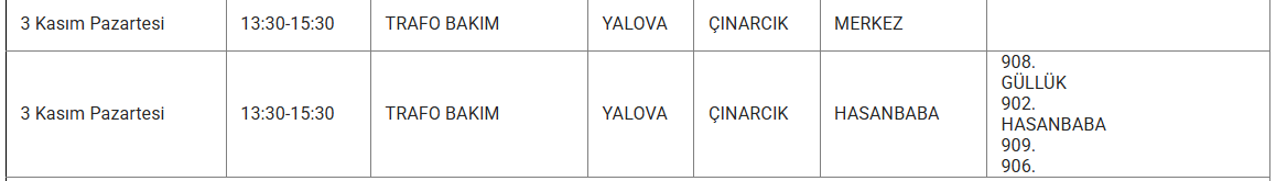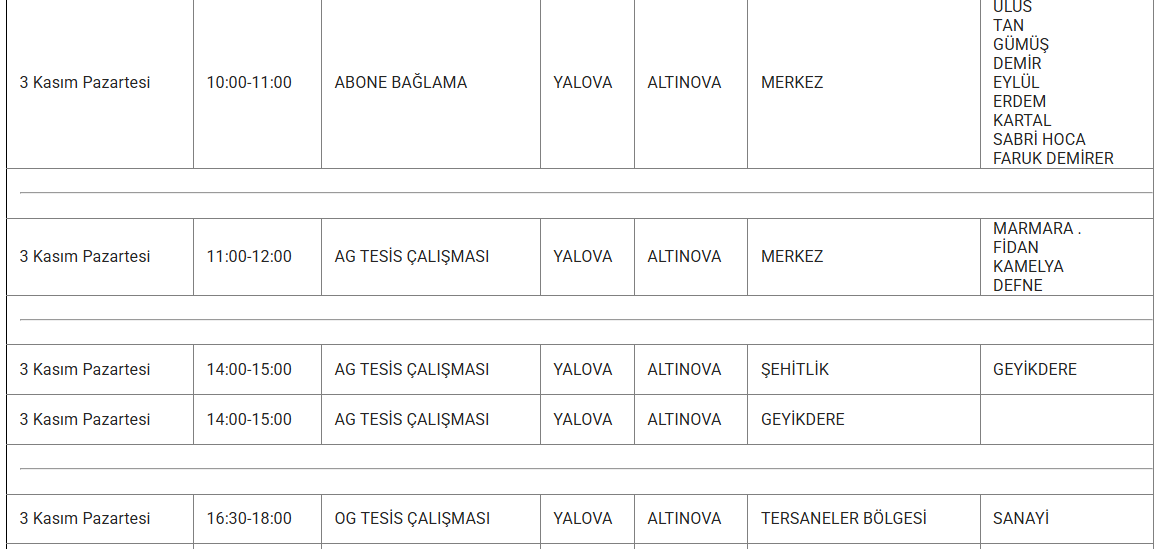 Uludağ Elektrik Dağıtım A.Ş., 3 Kasım 2025 PAZARTESİ günü Yalova’da uygulanacak planlı elektrik kesintilerinin kapsayacağı ilçe ve mahalleleri bildirdi. Peki, yarın (3 Kasım 2025) Yalova’da hangi alanlarda ve mahallelerde elektrik kesintisi yaşanacak?