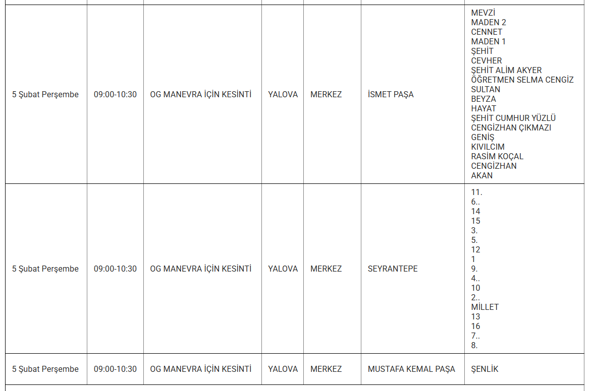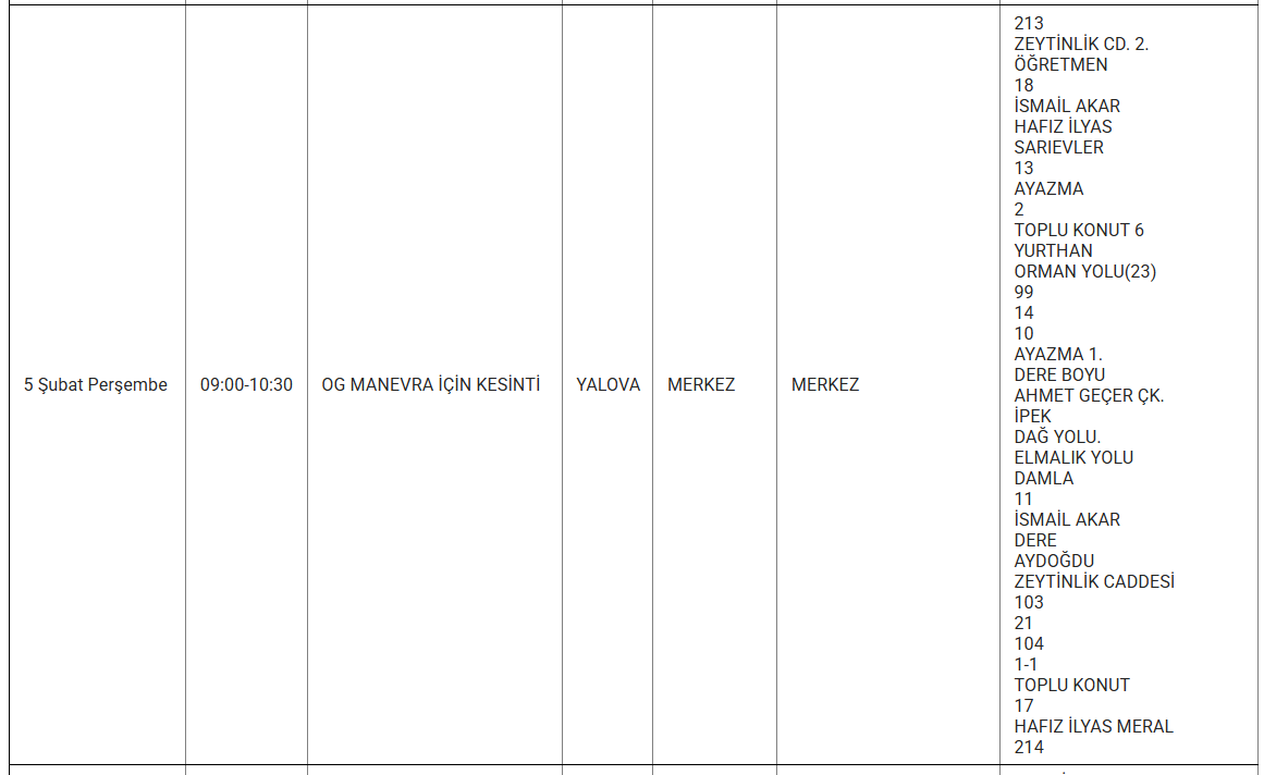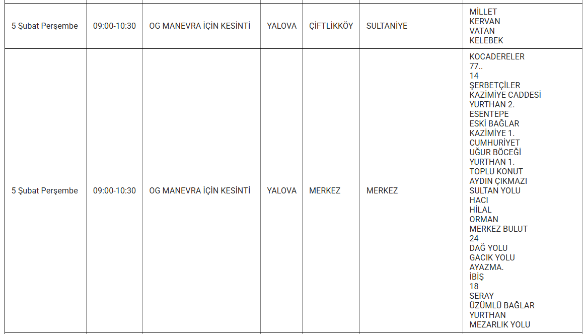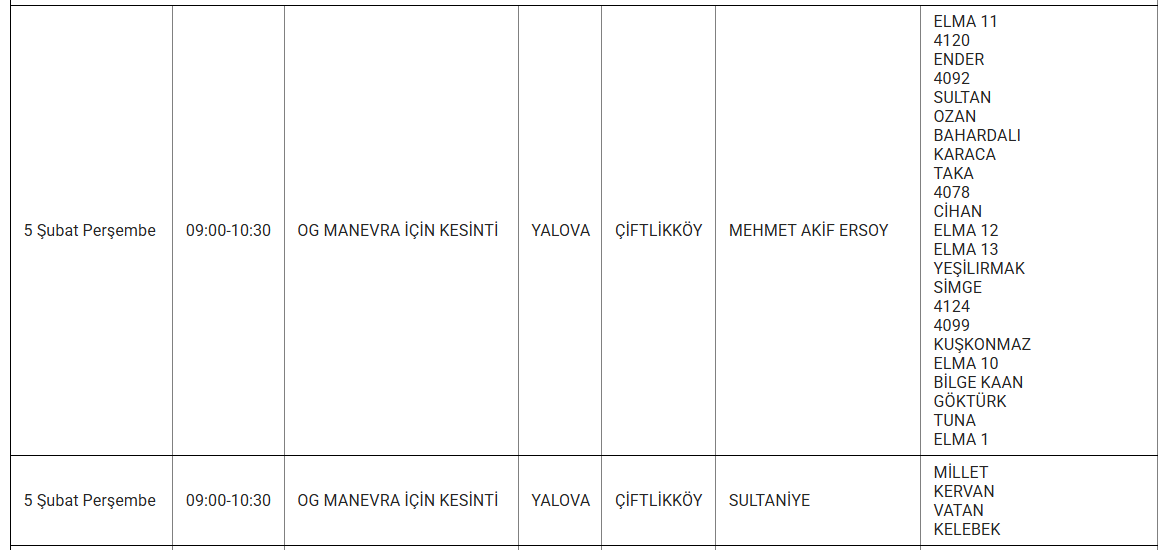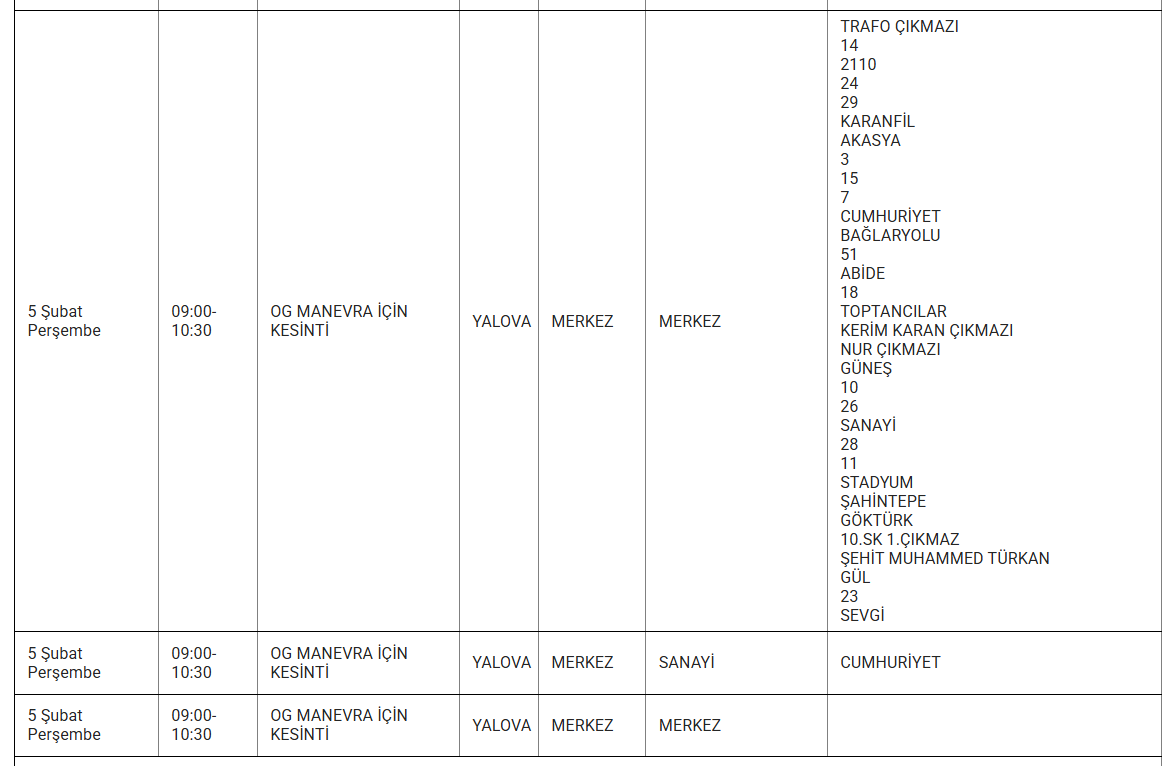 TREDAŞ, Yalova'da planlı bakım ve onarım çalışmaları kapsamında yaşanacak elektrik kesintilerini mahalle bazında duyurmaya devam ediyor. 5 Şubat Perşembe günü Yalova'nın farklı ilçelerinde belirli saat aralıklarında elektrik kesintileri yaşanacak.