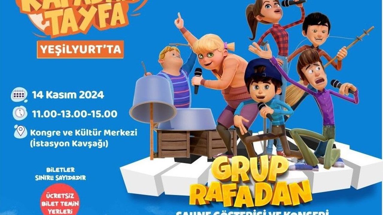 2024-2025 yılı eğitim-öğretim döneminde verilen ara tatilde çocukları unutmayan Yeşilyurt Belediyesi, TRT Çocuk Kanalının sevilen yapımları arasında yer alan, çocukların kişisel ve sosyal gelişimlerine destek veren konuların işlendiği Rafadan Tayfa'nın müzikal gösterisi, 14 Kasım Perşembe günü Kongre ve Kültür Merkezi Kemal Sunal Salonu'nda saat 11.00, 13.00 ve 15.00'de üç seans halinde sahnelenecek.