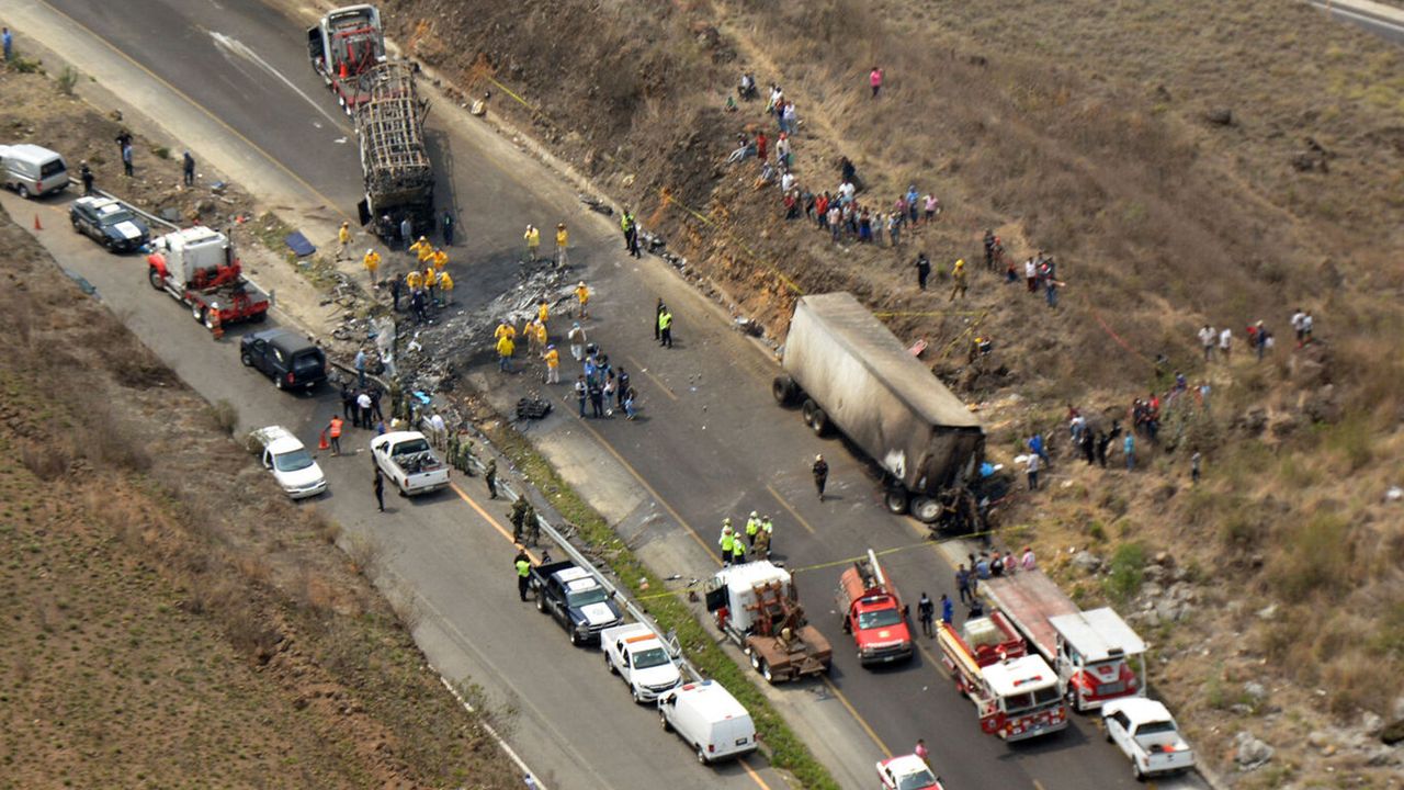 Ülkenin güneyindeki Nayarit eyaletinden ABD sınırındaki Chihuahua eyaletine bağlı Ciudad Juarez kentine giden otobüsün mısır taşıyan kamyondan ayrılan dorseye çarparak devrilmesi sonucu kaza meydana geldi.