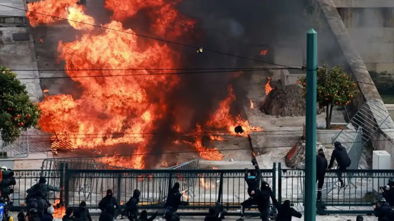 Polis ile eylemciler arasında arbede yaşandı. Eylemciler parlamento binası önünde molotofkokteyli atarken, polis biber gazıyla müdahale etti.