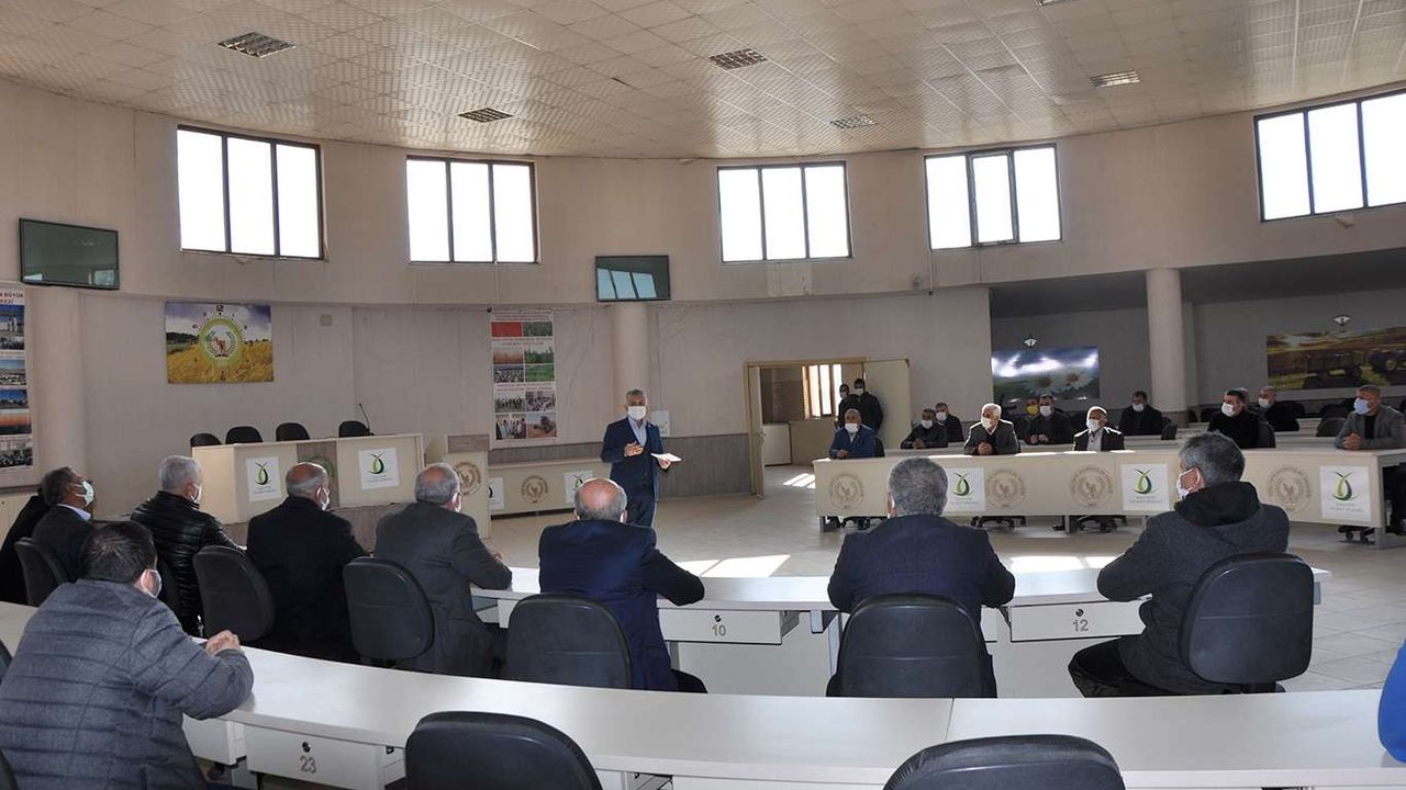 Kızıltepe Hububat Ticaret Merkezi çok amaçlı müzayede salonunda maske ve sosyal mesafe kuralına riayet edilerek bir araya gelen zahireci esnafı ile eski buğday pazarındaki dükkan sahipleri, yeni kararlar aldı.