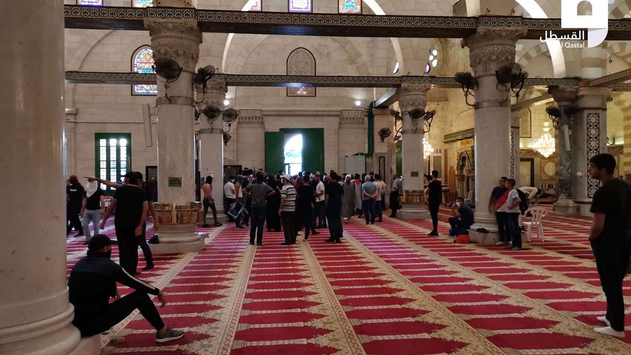 According to local sources, the occupation police seek to expel all the Palestinians from the Mosque in order for Jewish settlers to defile the site freely to mark what they call the temple destruction.